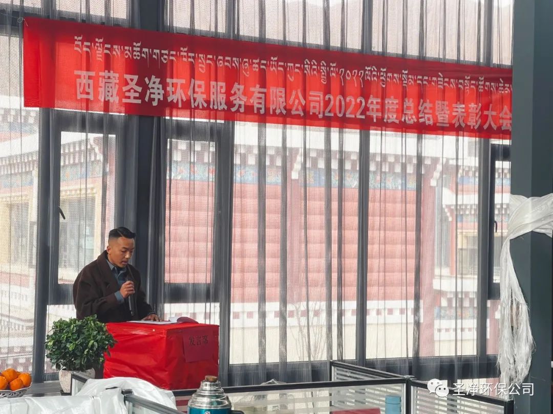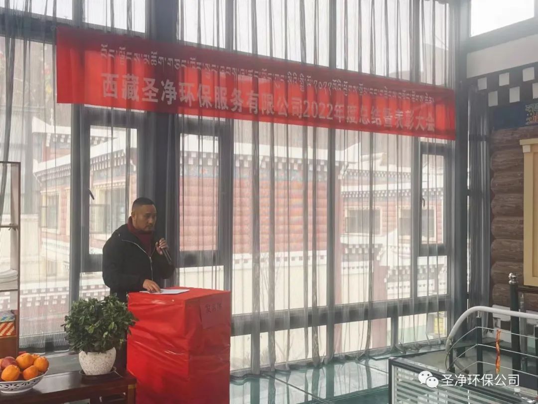 2023年2月17日11:00分,西藏圣凈環(huán)保服務(wù)有限公司在總公司二樓辦公室召開2022年度總結(jié)暨表彰大會??偨?jīng)理達瓦、股東尼瑪羅桑、股東達瓦多吉、副總經(jīng)理尼瑪次仁、公司顧問王常鵬、綜合辦公室主任旦真多吉、商務(wù)部經(jīng)理兼日喀則分公司經(jīng)理朗珍江參及各部門負責(zé)人、各分公司經(jīng)理、環(huán)衛(wèi)項目部經(jīng)理、污水處理廠廠長、優(yōu)秀員工代表和總公司全體員工出席會議。